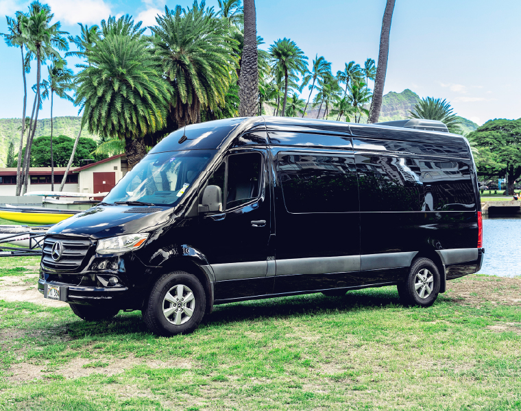 ハワイではお馴染みの観光送迎用ミニバス。 弊社では、スーツケースも運べる24人乗りと観光ツアーメインで使う32人乗りをご用意。社内はかがまずに歩ける高さがあるので、乗り降りも快適に行えます。