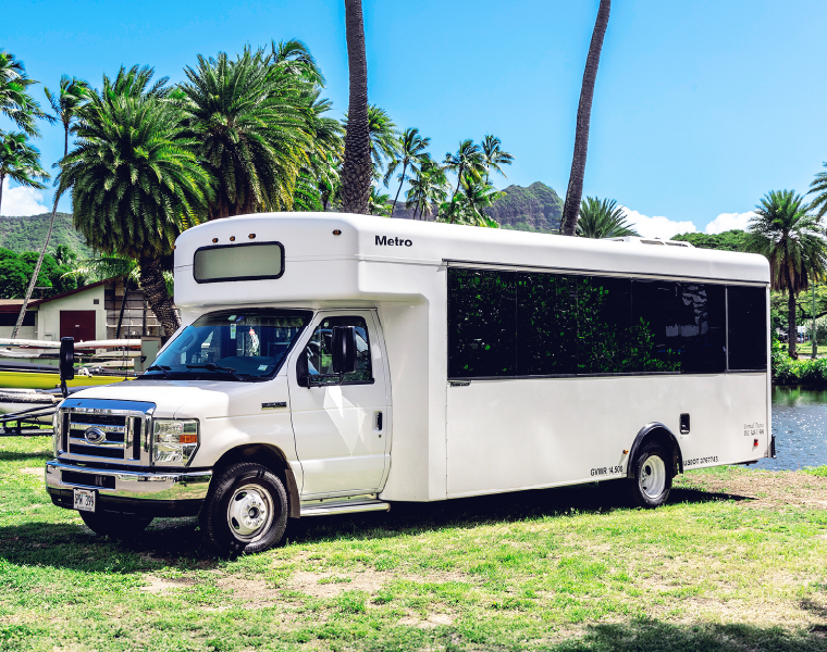- オアフ島内で様々なシチュエーションでの貸切運行(例:ウェディング送迎、ショッピング送迎、企業視察など)も承っております。柔軟に対応可能ですので、お見積りフォームよりお気軽にご相談ください。